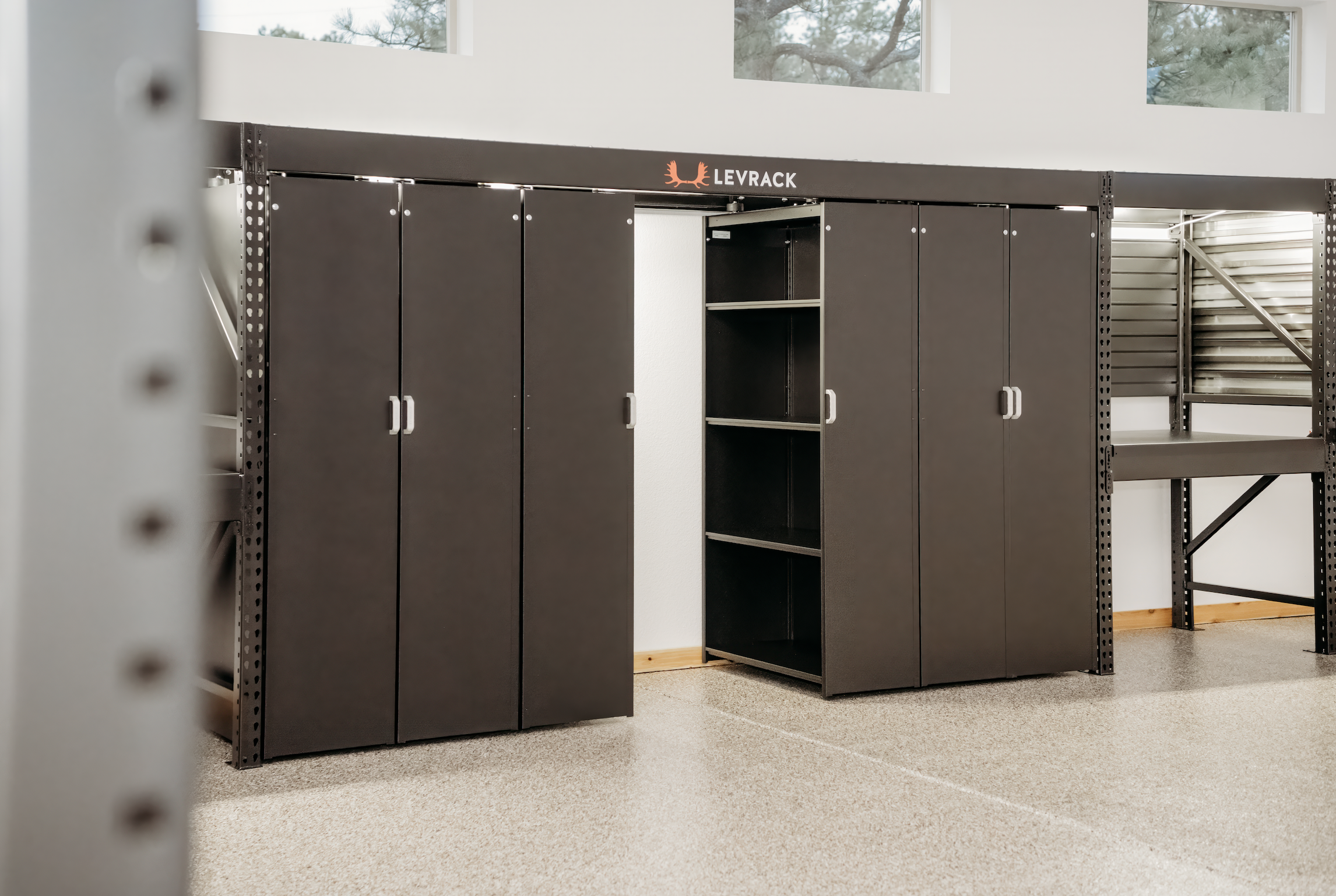 Proudly made in America, LEVRACK brings an industrial mobile shelving concept into real world garages, workshops, and utility spaces.